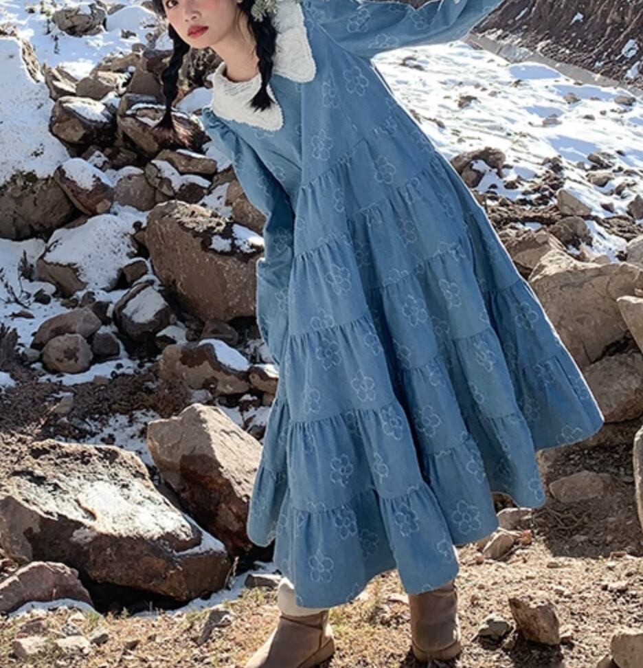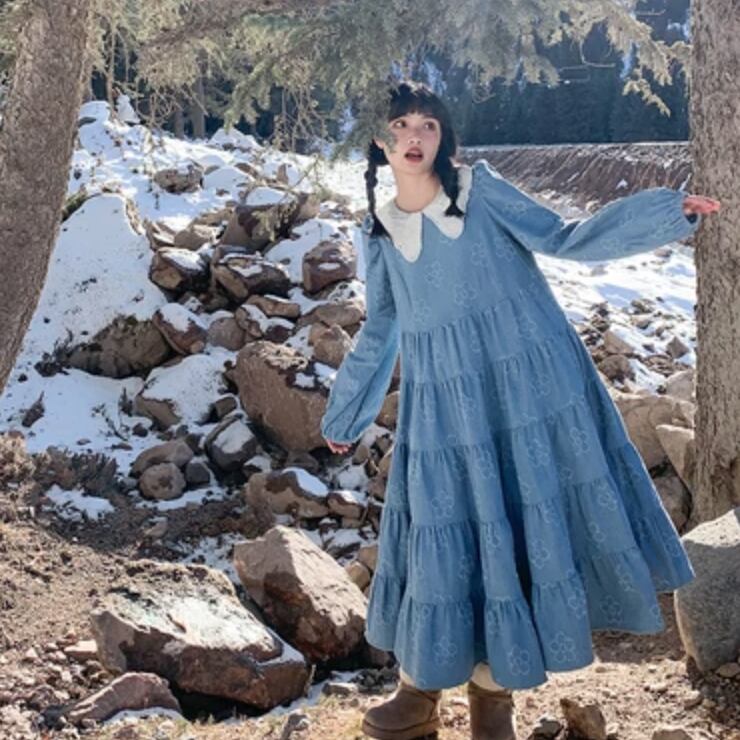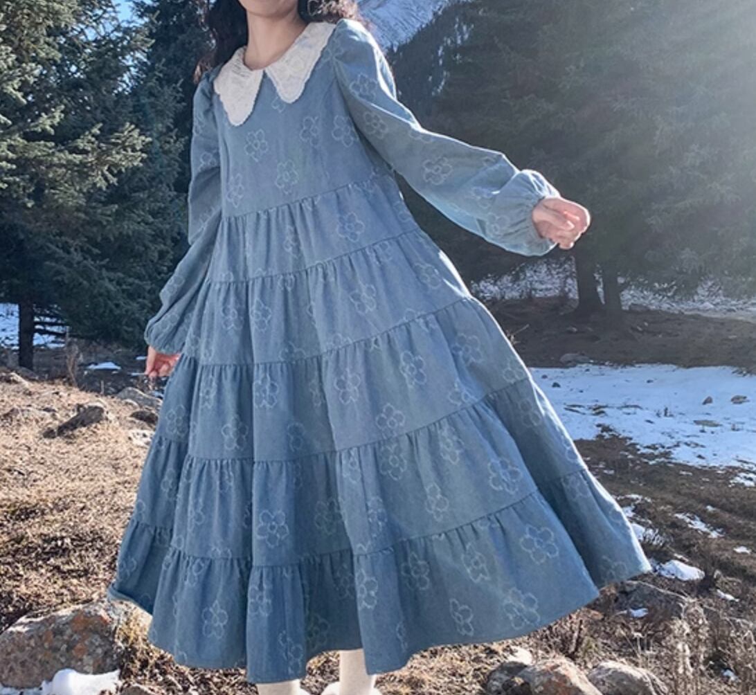 ワンピース フレア ミモレ 長袖 かわいい 大人可愛い きれいめ シンプル カジュアル 上品 おしゃれ かっこいい レトロ こなれ感 ラフ ガーリー ルーズ 個性的 クール モード系 エレガント 主役級 存在感 抜け感 ヴィンテージ ラブリー キュート ゴシック 都会的 ラグジュアリー クラシカル ロマンティック ナチュラル OL 学生 デート お出かけ イベント 旅行 女子会 休日 ショッピング カフェ コーデ 楽ちん 普段使い 着回し モテ インスタ映え S M ゆったり ゆる ブルー