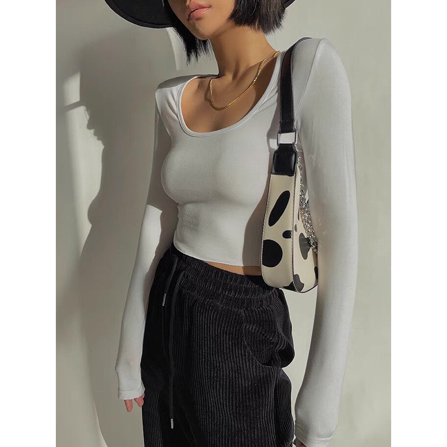 トップス Tシャツ ロンT カットソー クロップド丈 ショート 長袖 ラウンドネック スリムフィット タイト 細身 無地 きれいめ シンプル カジュアル おしゃれ お洒落 かっこいい こなれ感 クール モード系 セクシー 色っぽい 抜け感 ストリート 春 秋 冬 衣装 10代 20代 30代 40代 レディース 女性用 デート お出かけ 女子会 休日 ショッピング 公園 着回し 普段使い 韓国 韓国系 オルチャン ファッション コーデ スタイル デイリー 色展開 ホワイト ブラック グレー サイズ S M