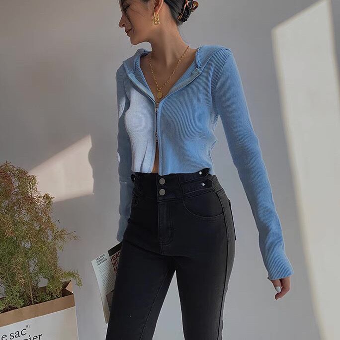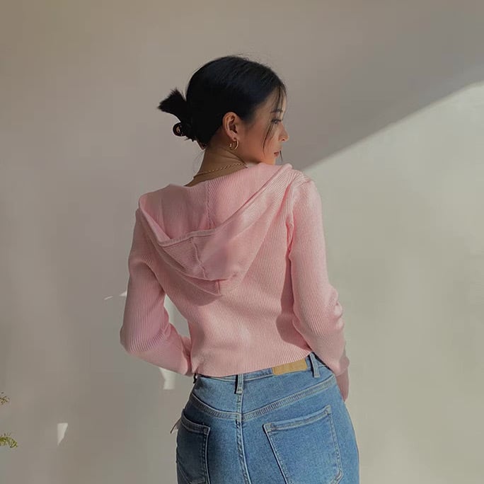 パーカー 羽織り リブ ダブルジッパー フード付き クロップド丈 ショート丈 袖あり 長袖 スリムフィット タイト 細身 無地 きれいめ シンプル カジュアル おしゃれ お洒落 かっこいい こなれ感 クール モード系 セクシー 抜け感 ストリート 春 秋 冬 衣装 10代 20代 30代 40代 レディース 女性用 デート お出かけ 女子会 休日 ショッピング 公園 着回し 普段使い 韓国 韓国系 オルチャン ファッション コーデ スタイル ブルー ピンク ブラック グレー ホワイト 5色 サイズ S M