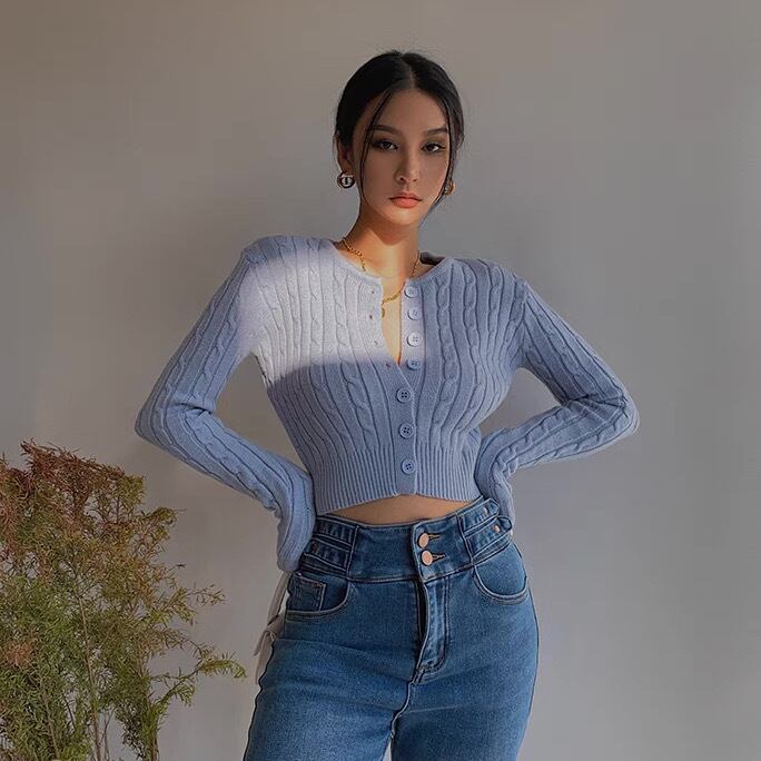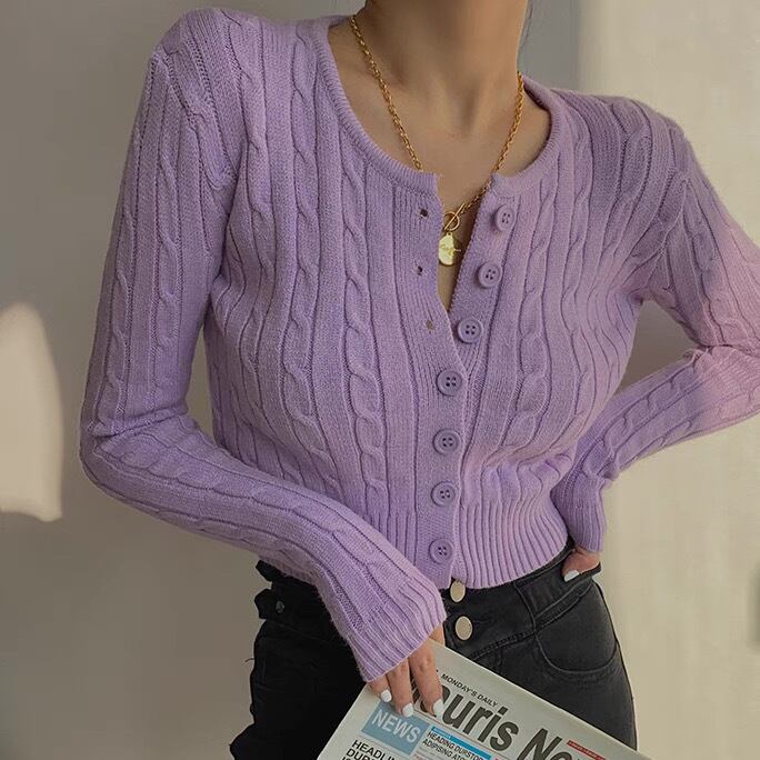 トップス カーディガン ニットソー クロップド丈 ショート丈 へそ出し 長袖 スリムフィット ツイスト編み きれいめ シンプル カジュアル おしゃれ お洒落 かっこいい こなれ感 クール モード系 セクシー 抜け感 ストリート 春 秋 冬 衣装 10代 20代 30代 40代 レディース 女性用 デート お出かけ 女子会 休日 ショッピング 公園 着回し 普段使い 韓国 韓国系 オルチャン ファッション コーデ スタイル デイリー 色展開 ブルー パープル カーキ 黒 ブラック ホワイト サイズ S M