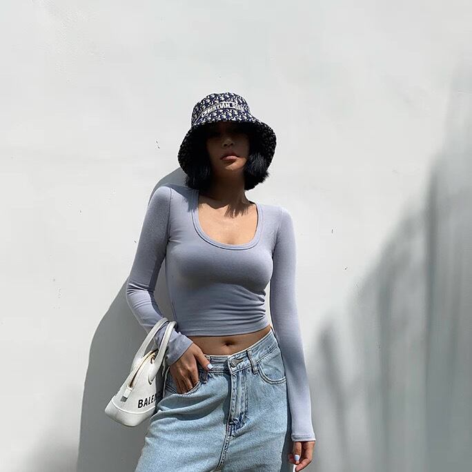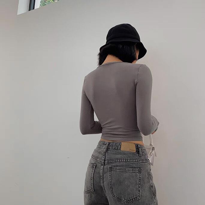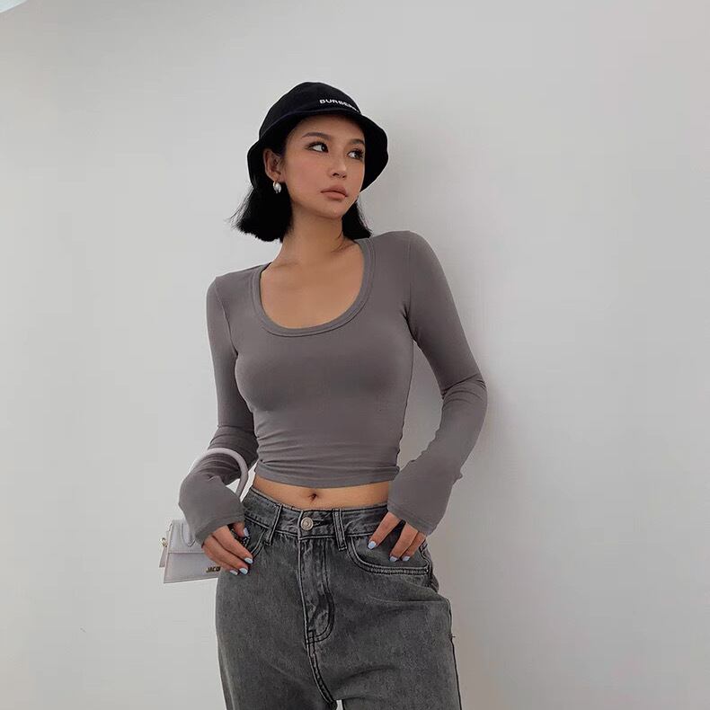 トップス Tシャツ ロンT カットソー クロップド丈 ショート丈 長袖 Uネック スリムフィット タイト 無地 きれいめ シンプル カジュアル おしゃれ お洒落 かっこいい こなれ感 クール モード系 セクシー 抜け感 ストリート 春 秋 冬 衣装 10代 20代 30代 40代 レディース 女性用 デート お出かけ 女子会 休日 ショッピング 公園 着回し 普段使い 韓国 韓国系 オルチャン ファッション コーデ スタイル デイリー 色展開 ライトブルーグレー コーヒー グリーン グレー サイズ M L