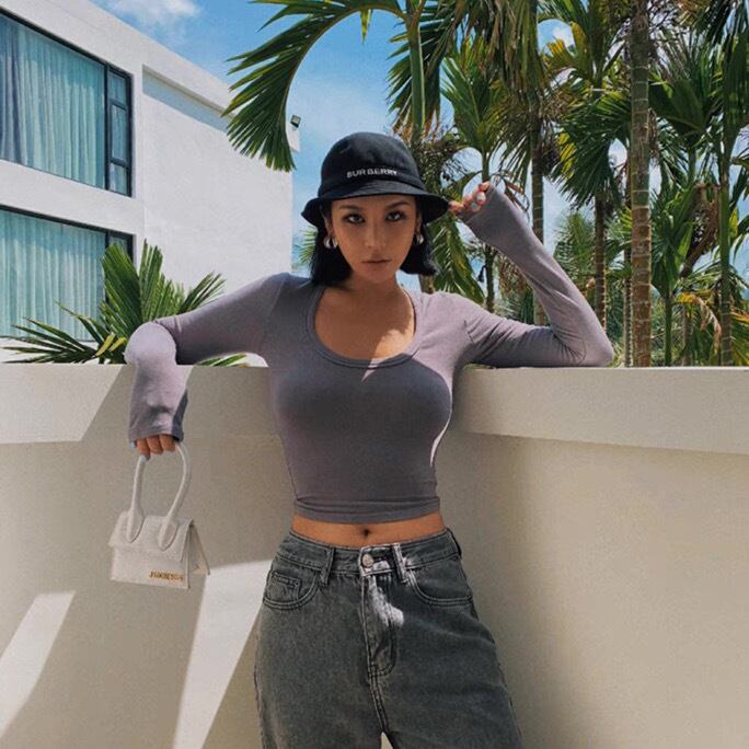 Uネックが女性らしい抜け感を演出し、クロップド丈がスリムフィットシルエットを美しく引き立てます。