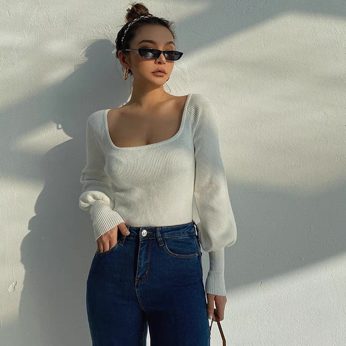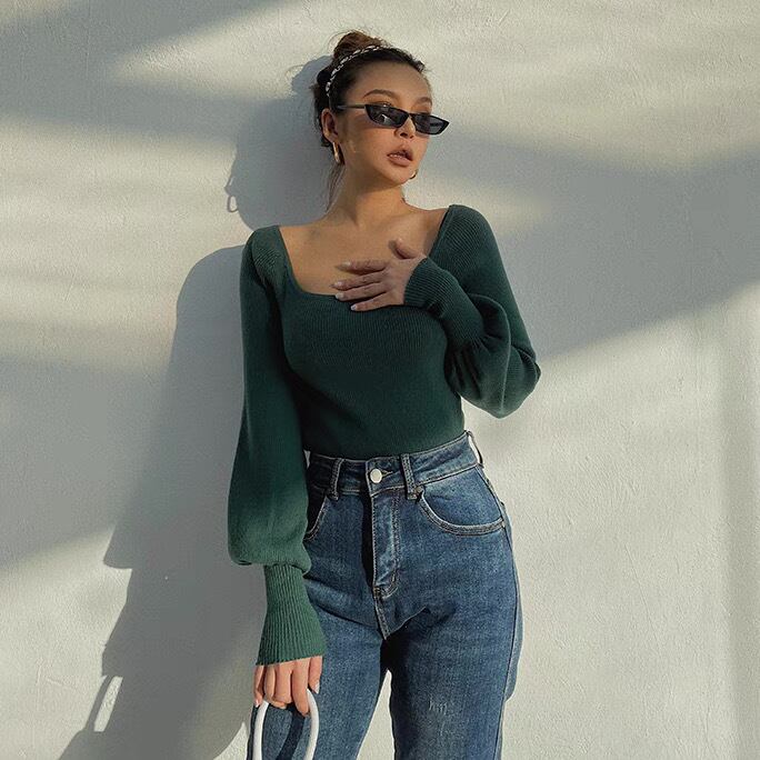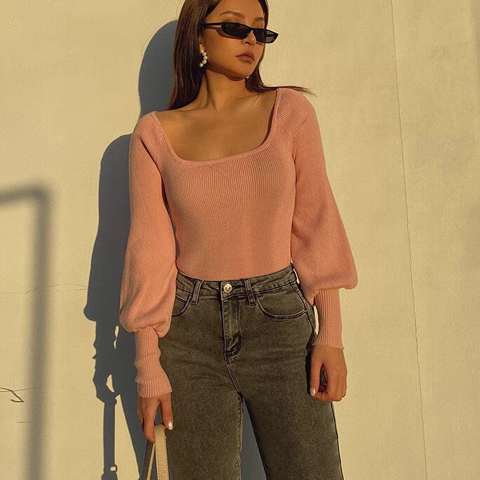 トップス カットソー リブニット クロップド丈 ショート丈 長袖 リブ袖 ボリューム袖 スクエアネック 鎖骨 スリムフィット 無地 きれいめ シンプル カジュアル おしゃれ お洒落 かっこいい こなれ感 クール モード系 セクシー ストリート 春 秋 冬 10代 20代 30代 40代 レディース 女性用 デート お出かけ 女子会 休日 ショッピング 公園 着回し 普段使い 韓国 韓国系 オルチャン ファッション コーデ スタイル デイリー ホワイト ブラック ピンク レッド グリーン サイズ S M