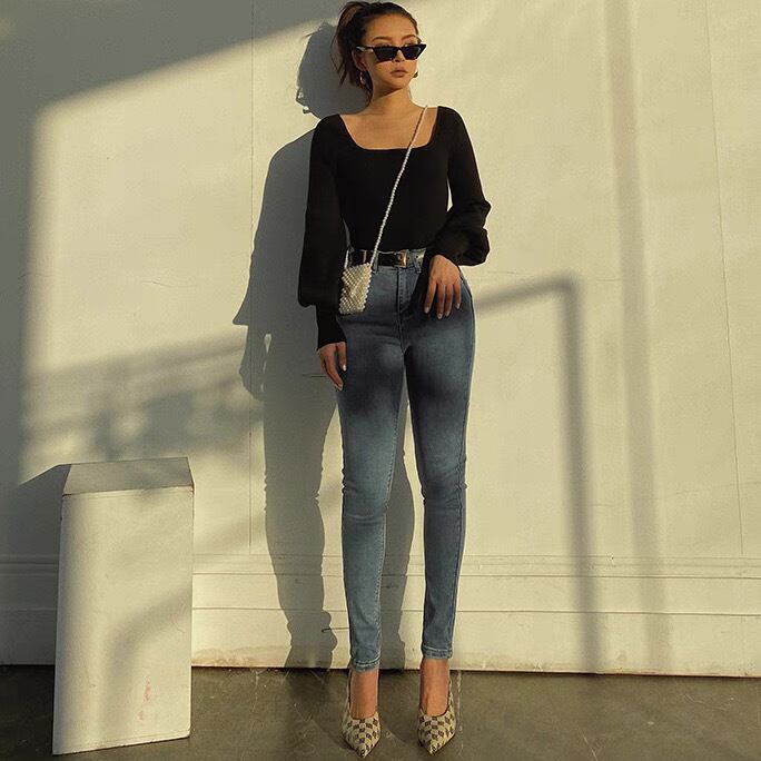 トレンドのクロップド丈が、腰高効果やスタイルアップ効果を演出します。