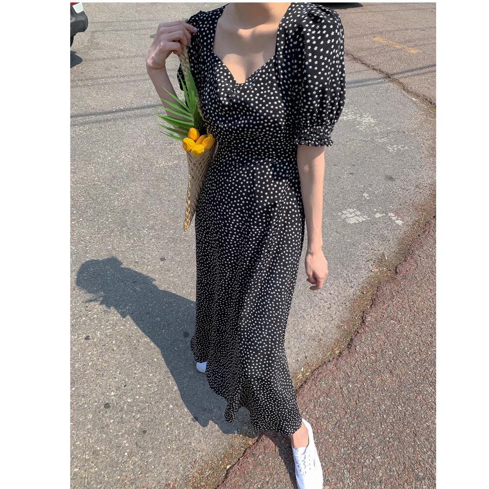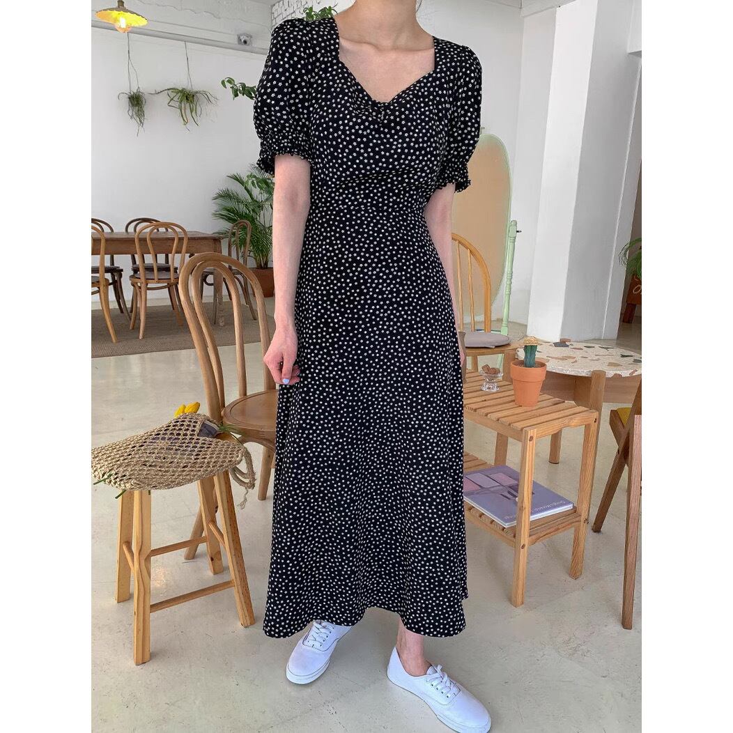 ワンピース フレアワンピース ミモレ丈 ロング丈 パフスリーブ Vネック スクエアネック フレア Aライン ハイウエスト 花柄 小花柄 フラワー かわいい 大人可愛い おしゃれ レトロ キュート ガーリー ドール ドーリー クラシカル フェアリー フェミニン 春 夏 10代 20代 30代 40代 レディース 女性用 デート お出かけ 休日 ショッピング 公園 着回し 普段使い 重ね着 韓国 韓国系 オルチャン ファッション コーデ スタイル モテ デイリー 色展開 黒 ブラック サイズ S M L XL