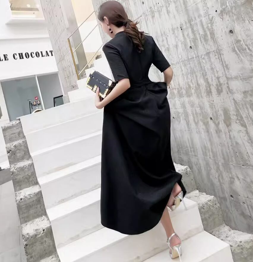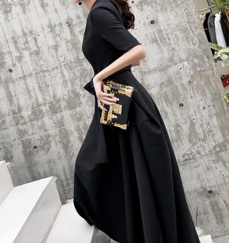 洗練されたシックなワンピースです。Vネックのデザインが女性らしさを引き立てます。一枚で主役級の存在感を放ちつつ、カジュアルにも上品にも着こなせる万能アイテムです。シンプルながらも個性的なデザインで、モード系からガーリーまで、様々なスタイルに合わせることができます。