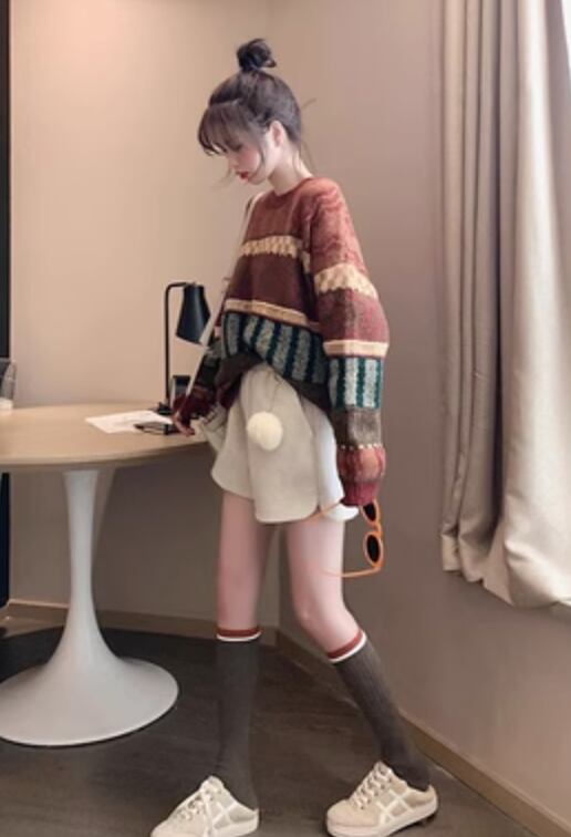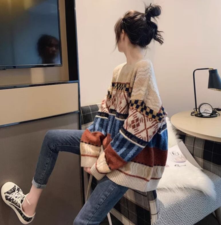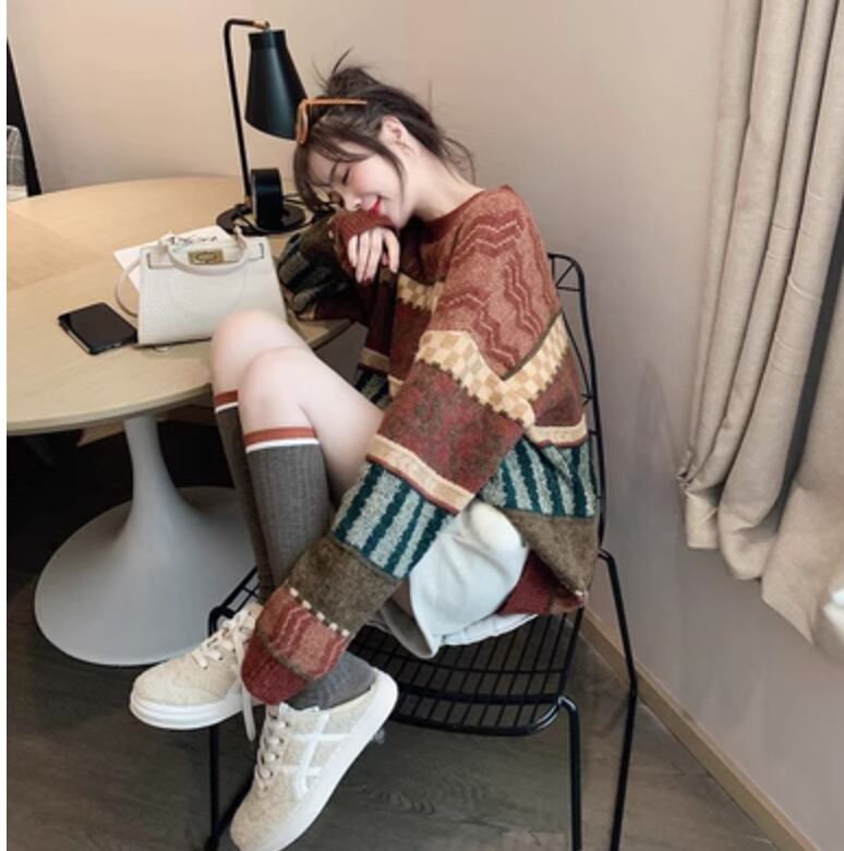 個性的 レディース トップス ニットソー セーター ショート ショート丈 膝上 袖あり 長袖 ラウンドネック セミフレア ワイド Aライン かわいい ラフ カジュアル おしゃれ お洒落 レトロ アジアン エスニック ガーリー ルーズ 主役級 柄 秋 冬 10代 20代 女性用 通学 デート お出かけ お泊まり 休日 着回し 普段使い 重ね着 ファッション スタイル 楽ちん 防寒 モテ 体系カバー トレンド インスタ映え S M L XL 大きいサイズ ビッグサイズ ゆったり ゆる 茶色 ブラウン ベージュ