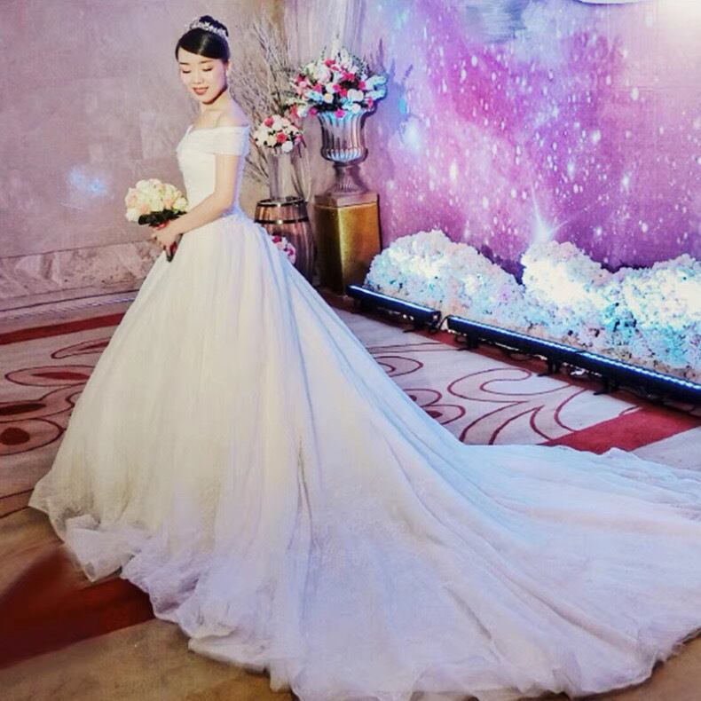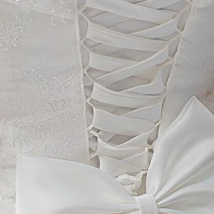 ふわりと広がり、美しく長引くドレスで、ウエディングロードを歩いてください。