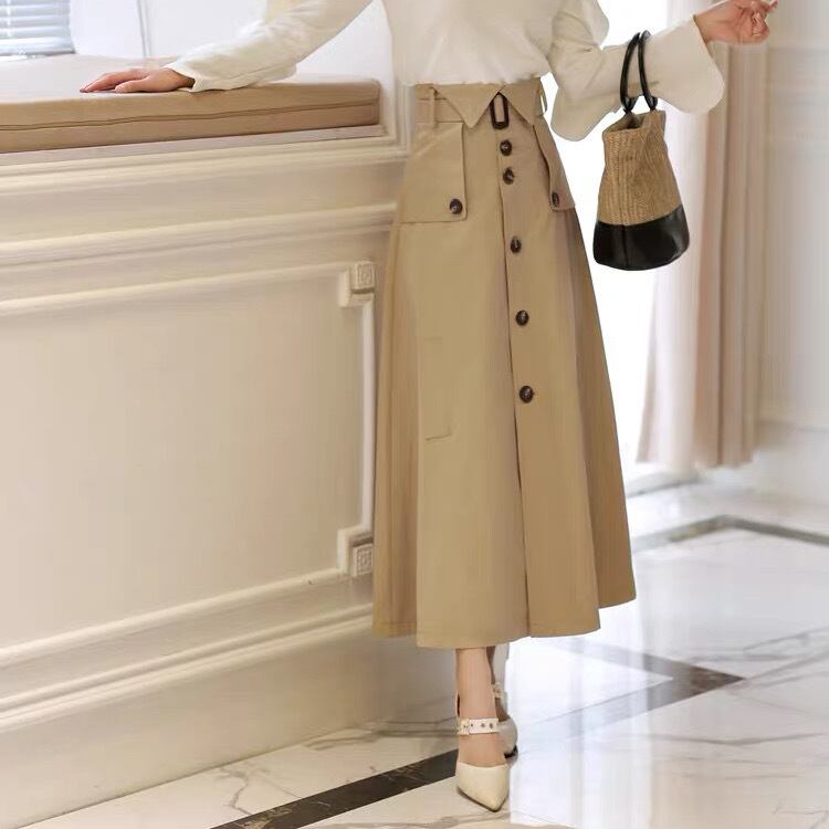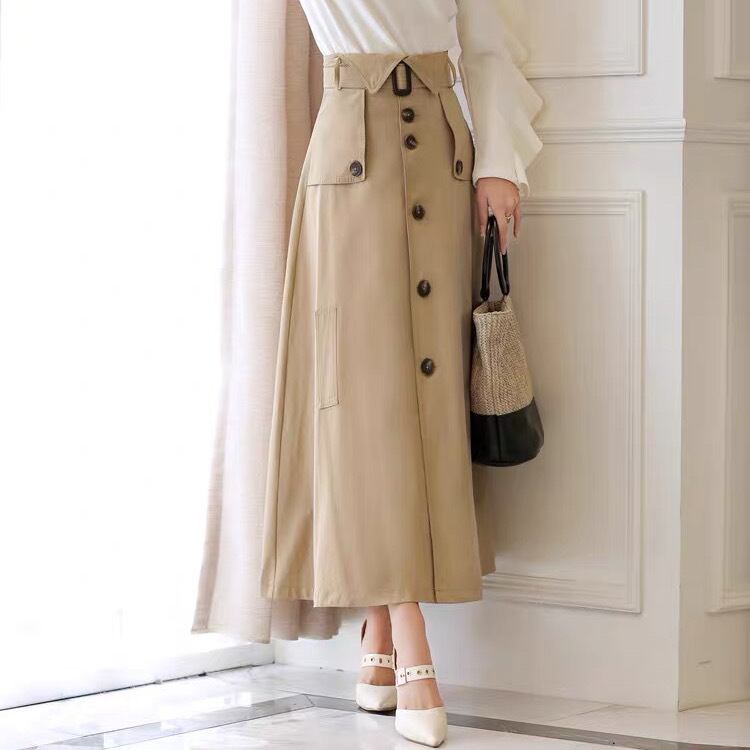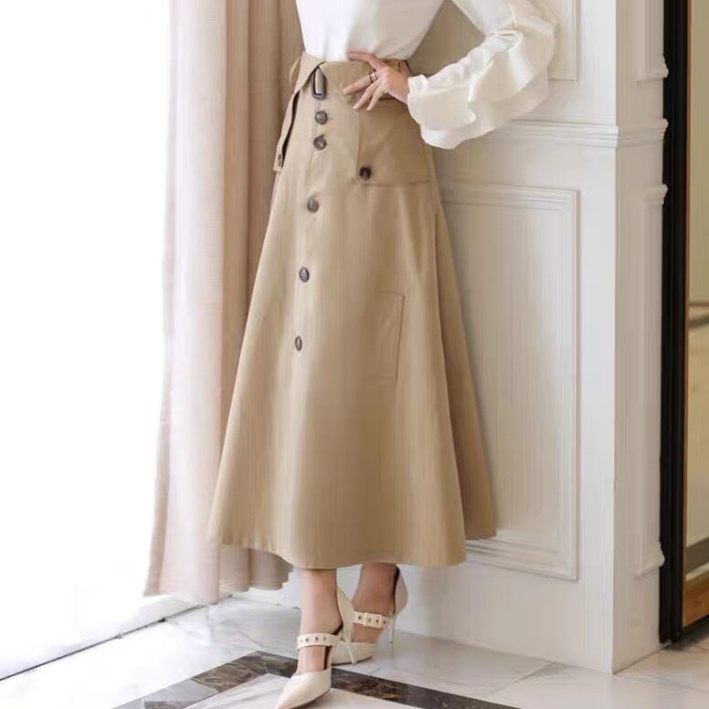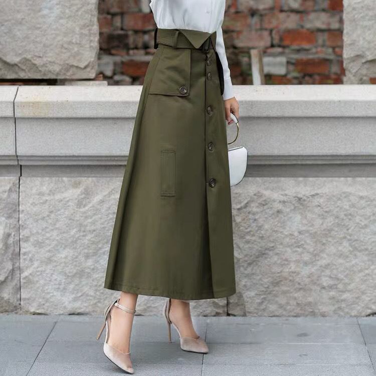 スカート ボトムス ロングスカート ミモレ丈 ロング丈 Aライン ウエストマーク ハイウエスト ボタン 無地 大人可愛い シンプル カジュアル 上品 おしゃれ お洒落 レトロ こなれ感 クラシカル 秋 冬 10代 20代 30代 40代 レディース 女性用 OL 通勤 デート ショッピング 着回し 普段使い 韓国 韓国系 オルチャン ファッション コーデ スタイル モテ 高見え デイリー 色展開 緑 グリーン カーキ ミリタリー サイズ XS S M L XL 2XL 3XL 小さいサイズ 大きいサイズ