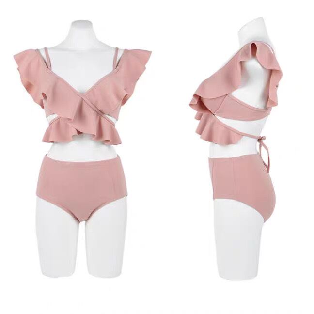 水着 ビキニ スイムウェア セパレート パッド付き クロス 二の腕カバー フリル ハイウエスト 胸元 盛れる セット 上下セット 2点セット ツーピース 無地 かわいい 大人可愛い おしゃれ お洒落 女っぽ ラブリー キュート ガーリー 夏 10代 20代 30代 40代 レディース 女性用 デート リゾート 旅行 海 プール 体系カバー 二の腕カバー 美脚 脚長 スタイルアップ 美スタイル 韓国 韓国系 オルチャン ファッション コーデ スタイル インスタ映え 色展開 白 ホワイト ピンク M L XL