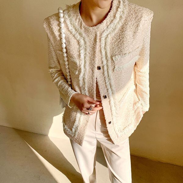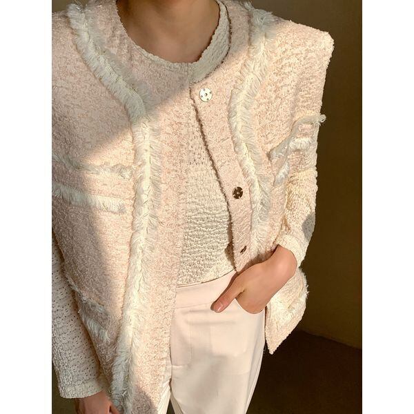 トップス ベスト ノースリーブ ツイード かわいい 大人可愛い きれいめ シンプル カジュアル 上品 おしゃれ かっこいい レトロ こなれ感 ラフ ガーリー ルーズ 個性的 クール モード系 エレガント 主役級 存在感 抜け感 ヴィンテージ ラブリー キュート ゴシック 都会的 ラグジュアリー クラシカル ロマンティック ナチュラル OL 学生 デート お出かけ イベント 旅行 女子会 休日 ショッピング カフェ コーデ 楽ちん 普段使い 着回し モテ インスタ映え S M ベージュ