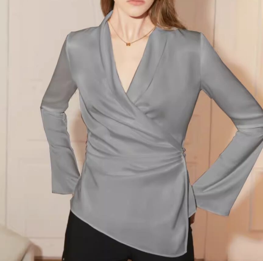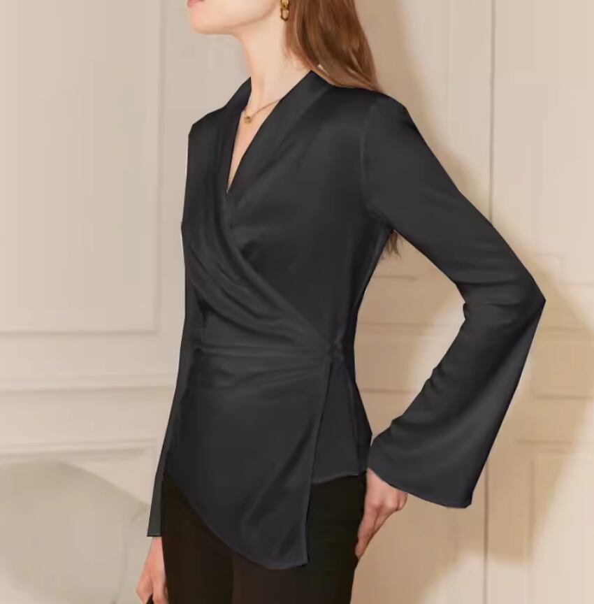 シックな雰囲気漂うシャツ。Vネックと長袖のデザインが、オシャレな大人女子にぴったりです。シンプルながら、こなれ感と上品さを兼ね備えたアイテムです。ヴィンテージ感やモダンさをプラスしてくれるので、主役級の存在感を放ちます。