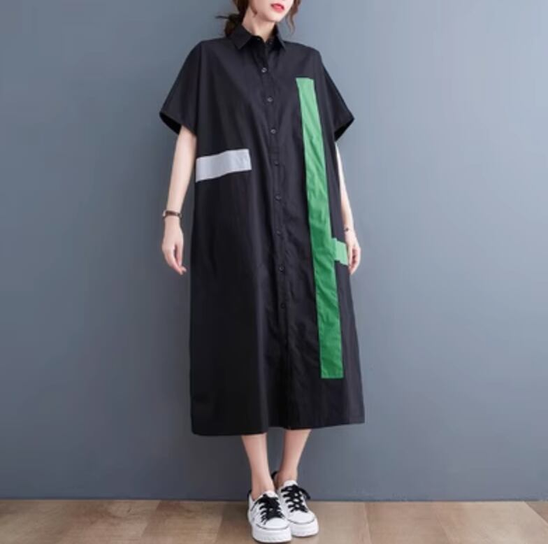 ワンピース シャツワンピ ミモレ 半袖 かわいい 大人可愛い きれいめ シンプル カジュアル 上品 おしゃれ かっこいい レトロ こなれ感 ラフ ガーリー ルーズ 個性的 クール モード系 エレガント モダン 主役級 存在感 抜け感 ヴィンテージ ラブリー キュート ゴシック 都会的 ラグジュアリー クラシカル ロマンティック ナチュラル OL 学生 デート お出かけ イベント 旅行 女子会 休日 ショッピング カフェ コーデ 楽ちん 普段使い 着回し モテ インスタ映え L XL ブラック