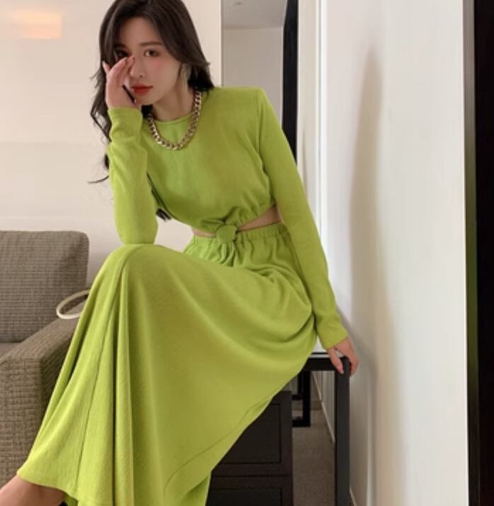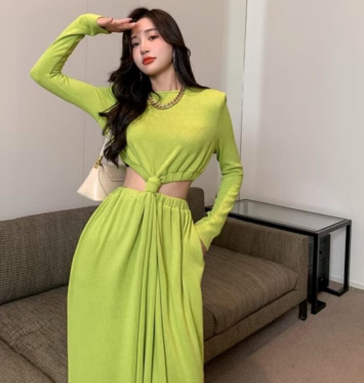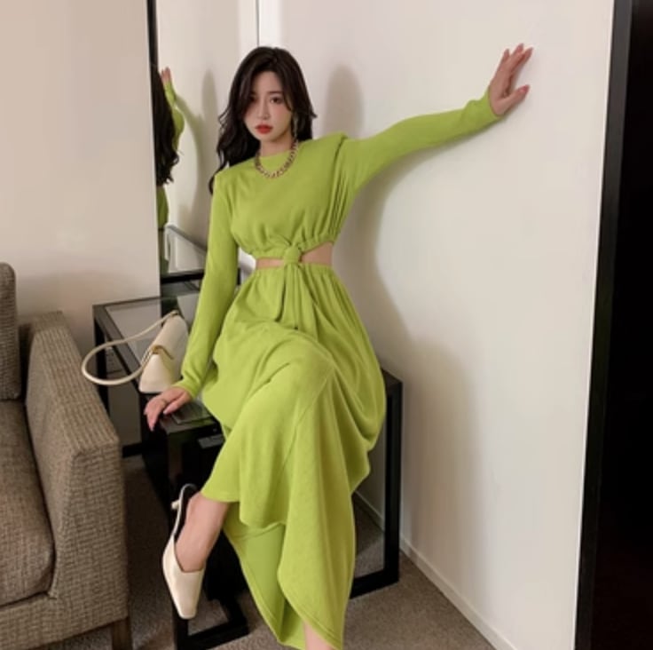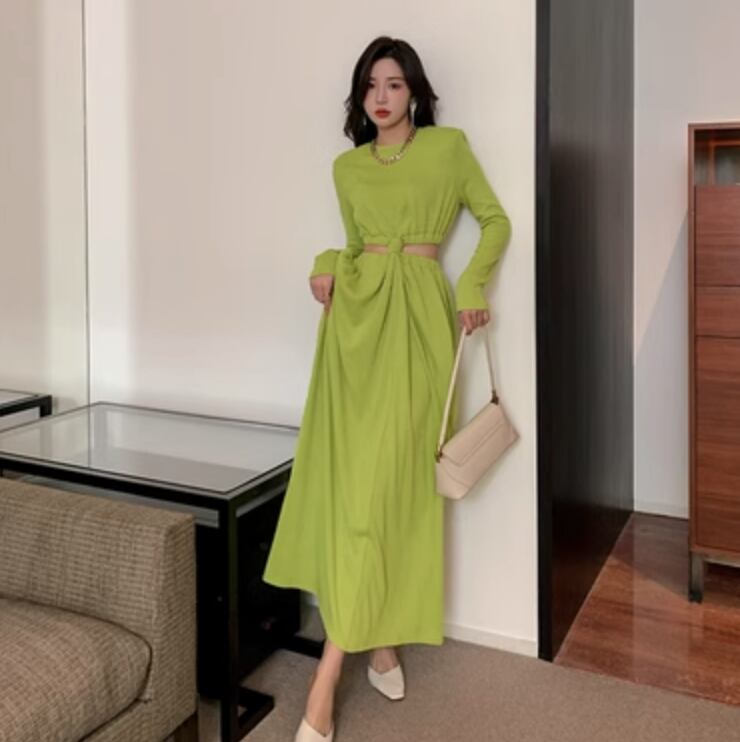 ワンピース ロング 長袖 かわいい 大人可愛い きれいめ シンプル カジュアル 上品 おしゃれ かっこいい レトロ こなれ感 ラフ ガーリー ルーズ 個性的 クール モード系 エレガント モダン 主役級 存在感 抜け感 ヴィンテージ ラブリー キュート ゴシック 都会的 ラグジュアリー クラシカル ロマンティック ナチュラル 無地 春 秋 OL 学生 デート お出かけ イベント 旅行 女子会 休日 ショッピング カフェ コーデ 楽ちん 普段使い 着回し モテ インスタ映え M L グリーン